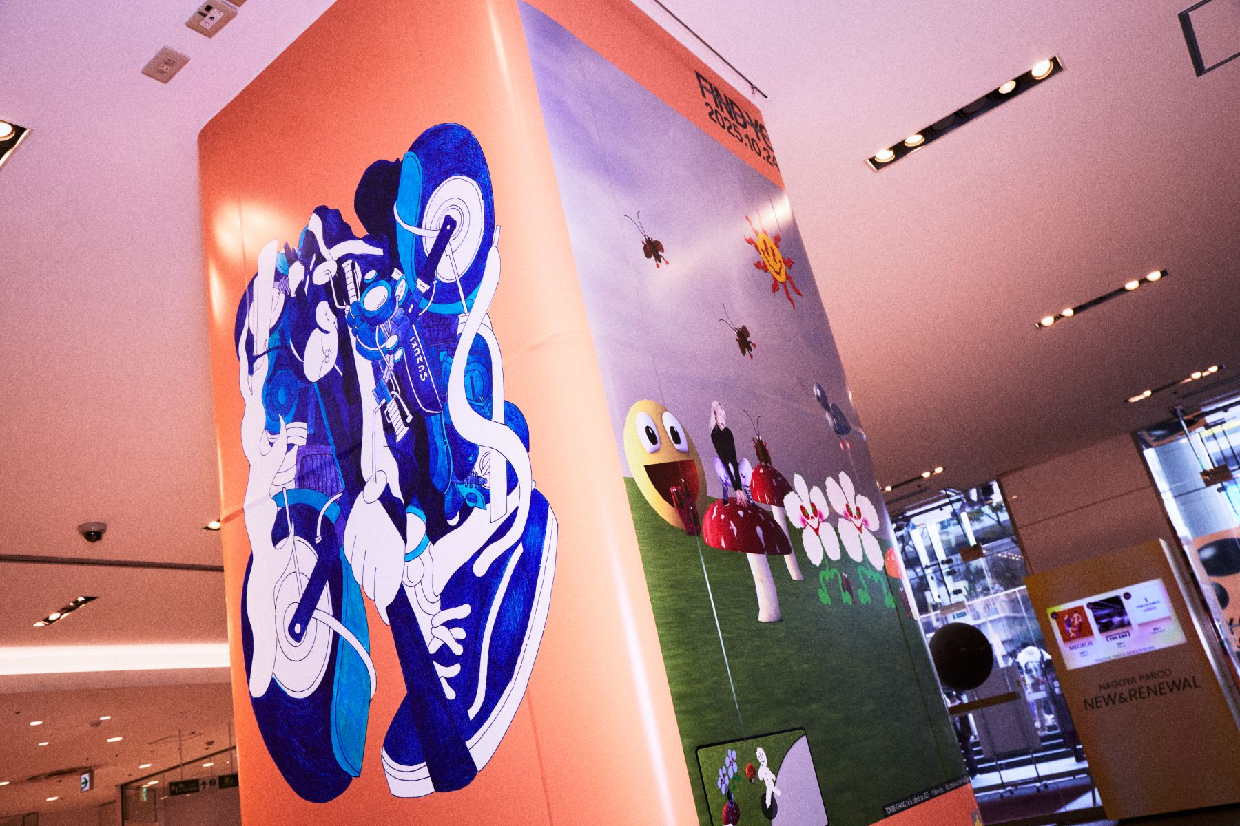 名古屋PARCOの西館1F-2F、東館B1F-1Fの各拠点に30名を越えるアーティストたちの作品を展示。イベントのキービジュアルを制作した佐々木俊氏の様々なコアのデザインは、エントランスや通路など随所にちりばめられ、中にはコアの裏側が人の顔になっている仕掛けも。特別ライブで出演した「ZOMBIE-CHANG」のミュージックビデオを本人と共同制作したShan-Lou氏の作品など、国内外問わず多彩なアーティストの豊かな発想に館内が彩られ、名古屋PARCO全体が「FIND YOUR CORE」のテーマで溢れた。