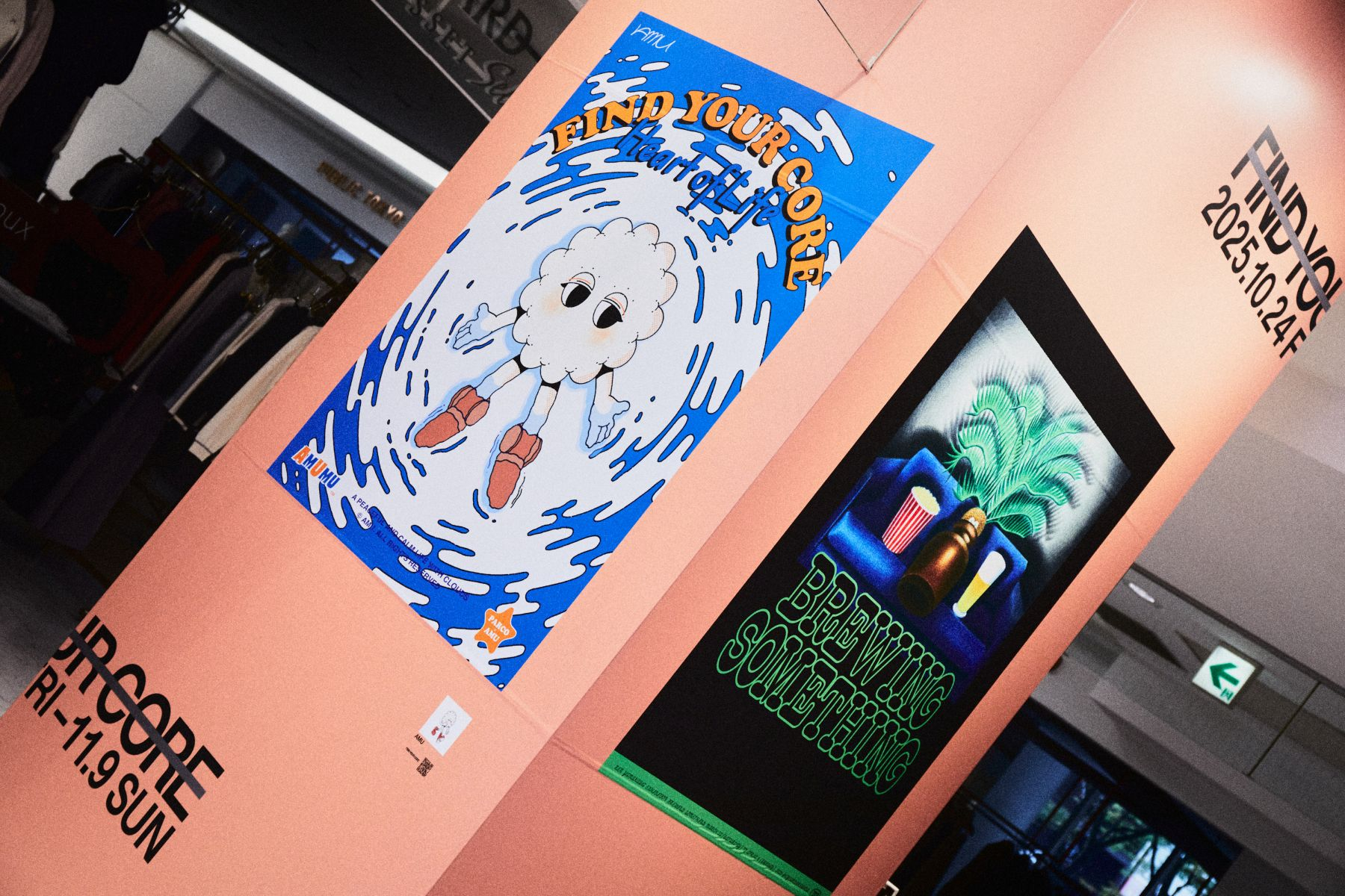 イベント開催期間中は、総勢30名以上のアーティストによるアート作品やアイテムが集結。名古屋PARCOの西館1F、2Fなどのフロア壁面には、各アーティストたちの自由な発想による個性溢れる作品を展示し、いつもとは一味違ったカルチャー感溢れるムードを華やかに演出。エントランスや階段、エレベーター壁面などには、本企画のキービジュアルを担当したグラフィックデザイナー・佐々木俊氏が手掛けた様々な“コア”を表現したデザインが彩る――