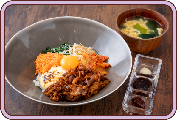 1,540円味噌のソースで甘辛く味付けした牛肉に、香ばしく焦がしたチーズ、ナムルやキムチが絡み合う丼。和の味を取り入れることで、より親しみやすい一杯に。