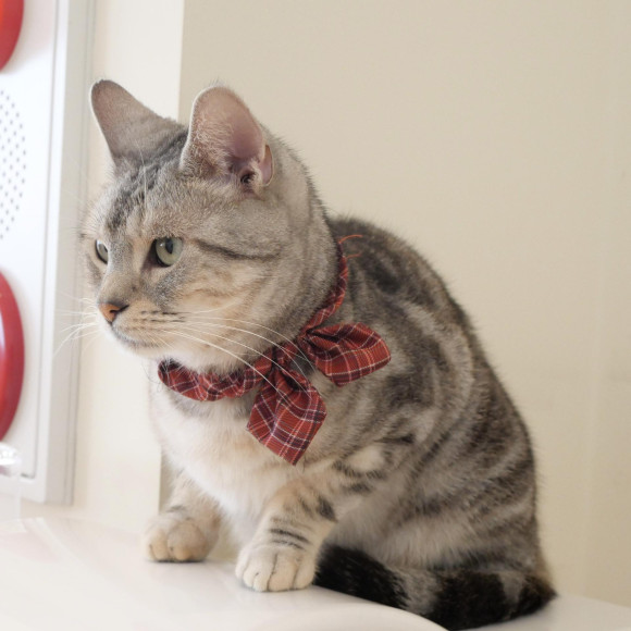 赤いリボンの首輪が似合う可愛さと
