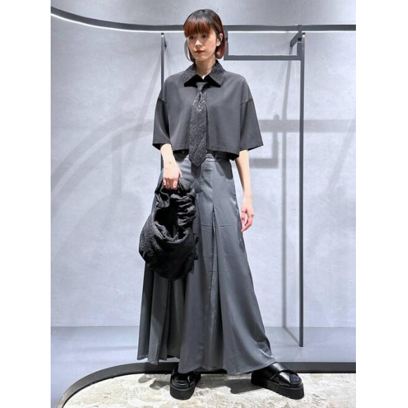 袖丈が半袖の中でも肘にかかるくらいで大人っぽく着れます☺️