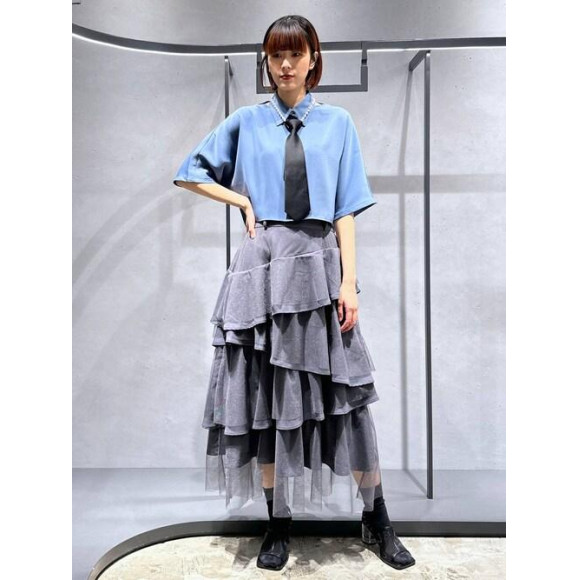 ボリューム満点なティアードスカートで動くたびに揺れるのがポイント☑︎