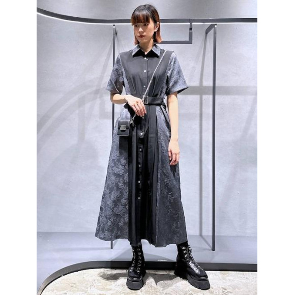 169㌢高身長女子 人気のワンピに新色登場です♪ ワンピース[ジャガードキリカエタックワンピース] ジャガード素材が切り替えで入っている半袖ワンピ! 体のサイドに切り替えで入っているのでスタイルアップ抜群なんです❣️❣️ プラスでボタンのところもガラでなさ可愛いですよね☺️ シャツワンピなので色んな着方が出来るのもポイント☑︎ ワンピだけど着回しできるアイテムです! 丈感は私の身長で足首見えます☺︎