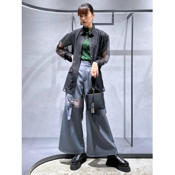 前腿に透け感が出るデザイン性抜群のパンツ!