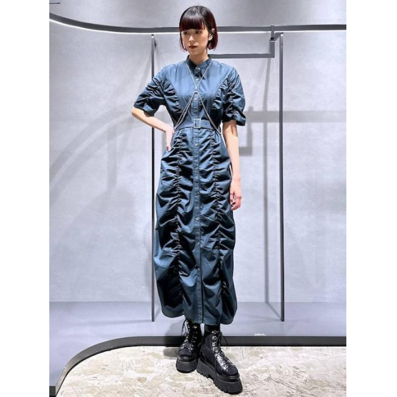 169㌢高身長女子 高身長さんおすすめワンピです♪ ワンピース[ギャザーデザインワンピース] 全身にギャザーデザインが施されていて立体感抜群です ギャザーはゴムが入っているわけではありません! サラッとしている素材ですがすこしマットでモードっぽく着れます✨✨ 高身長さんにおすすめしたいワンピです‼️ 丈眺めでボトムスをレイヤードせずとも着れますよ 平均身長さんでくるぶし丈くらいです!