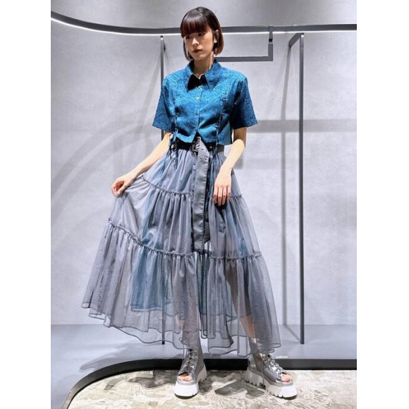 チュールデザインで持っているボトムスにプラスワンで重ねるとめちゃくちゃ可愛くなります