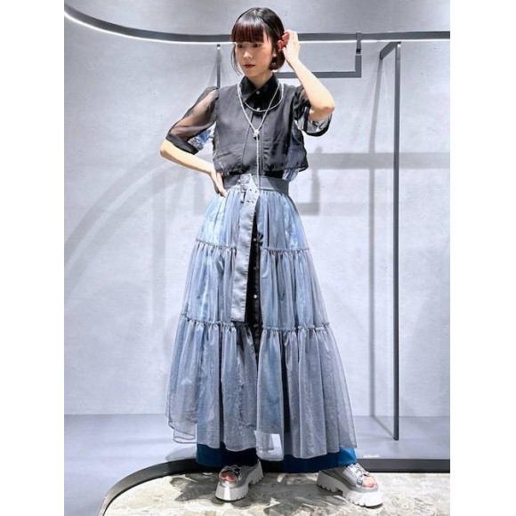 チュールデザインで持っているボトムスにプラスワンで重ねるとめちゃくちゃ可愛くなります
