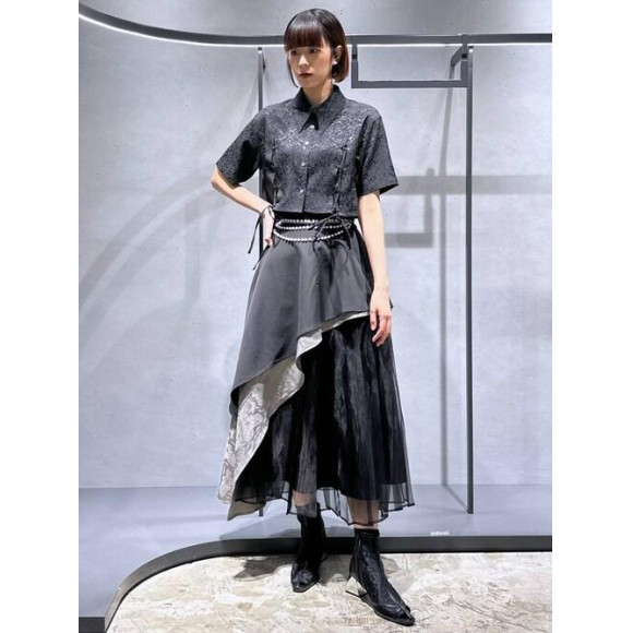 真ん中はジャガード素材でプリーツ部分はシアーで夏らしく着ていただけます
