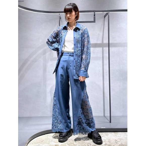 169㌢高身長女子 人気のレースアイテムが再入荷! シャツ[フラワーレースミドルシャツ] 甘すぎない総レースシャツ! しっかりとした素材感でほつれにくいレースかと✨ 身幅着丈共にゆったりめでメンズの方も着やすいですよ パンツ[フラワーレースキリカエパンツ] シャツとセットアップ対応です✨ サイドに三角形で切り替えデザインになっています! 程よく肌見せができ、綺麗めなワイドパンツで上品な印象になります! 丈感は私の身長で落として履くと◎