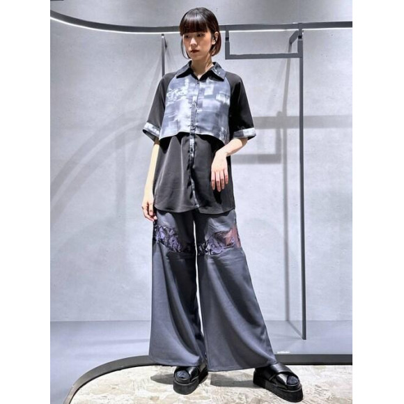 ◉ワイドパンツシルエットで膝上〜太ももあたりにシアー刺繍がきます!