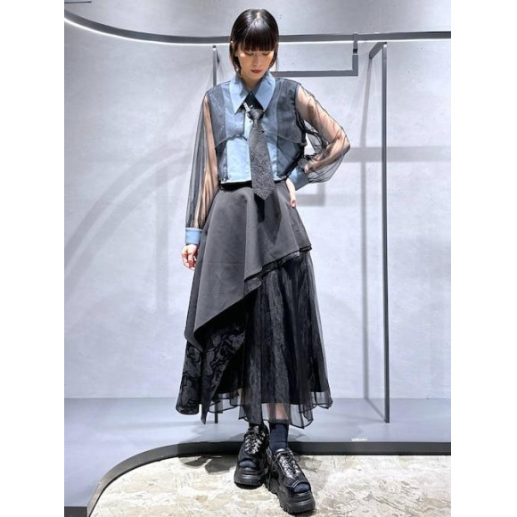 ◉真ん中はジャガード素材でプリーツ部分はシアーで夏らしく着ていただけます