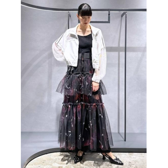 トラックジャケットタイプなのでスポーティさもありつつ、素材がサラッと系なのでモードにも