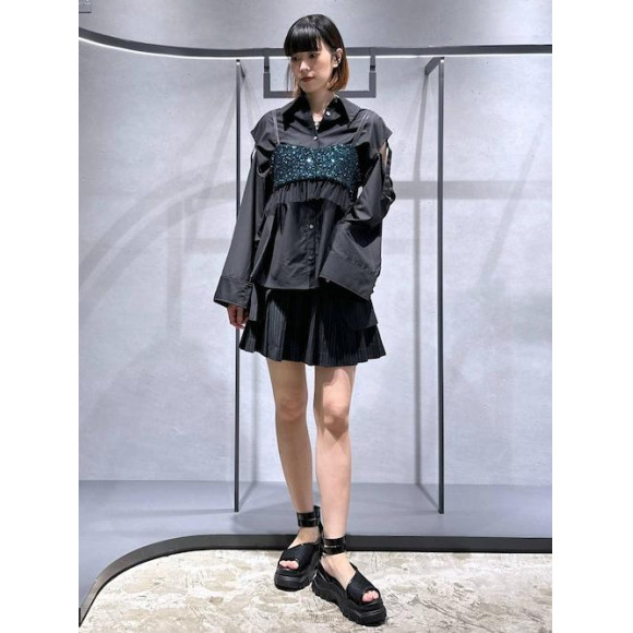 パンツ▶︎デザイン性抜群のショーパン!プリーツの上にレイヤードデザインが入っている事でお尻周りのプリーツの広がりを抑えてくれます✨