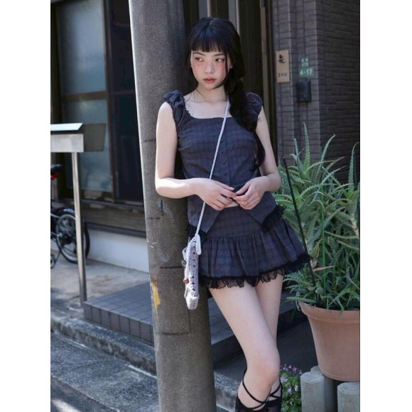 【Uglyshadow】CHECK SHIRRING SKIRT / 【アグリーシャドウ】チェックシャーリングミニスカート