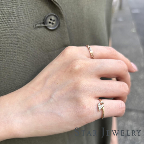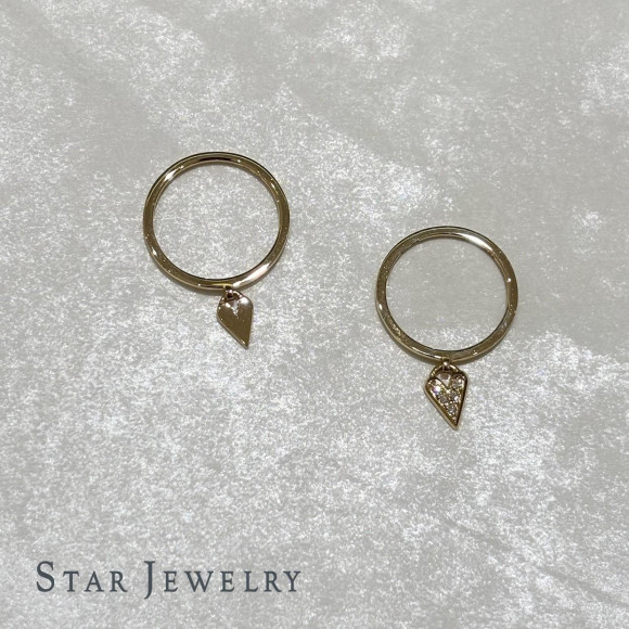 すっきりシャープなラインで描いた大人なハートが指元でさりげなく揺れ、視線を集めるリングです♡