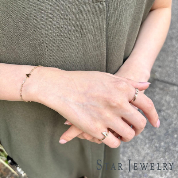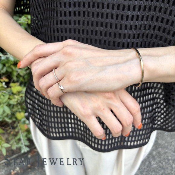シンプルな地金のアームに、ハートの部分は地金とダイヤモンドの2種展開になり、どちらも程よく手元のコーディネートのアクセントになります(*'ω'*)