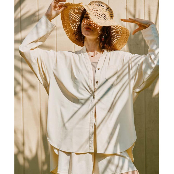 ゆったりとしたシルエットのシャツとショートパンツのセットアップデザイン☆