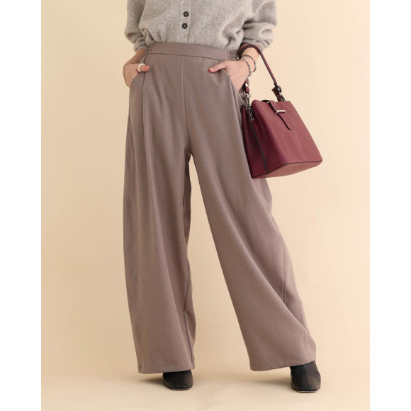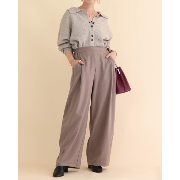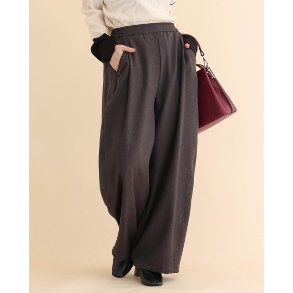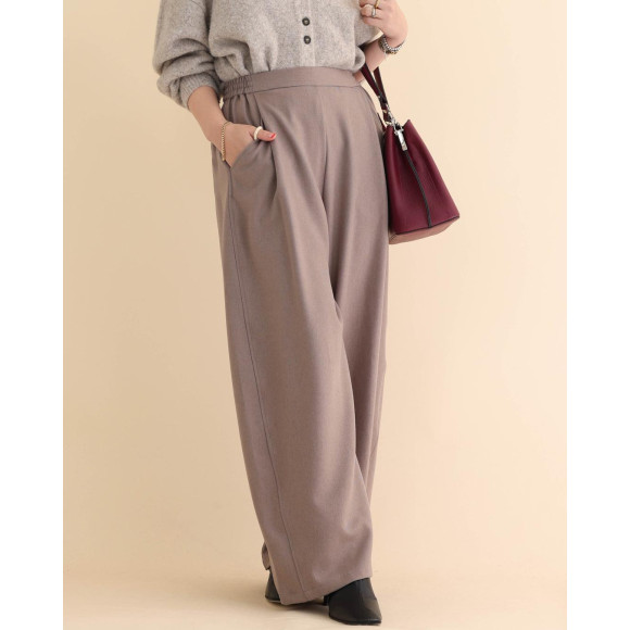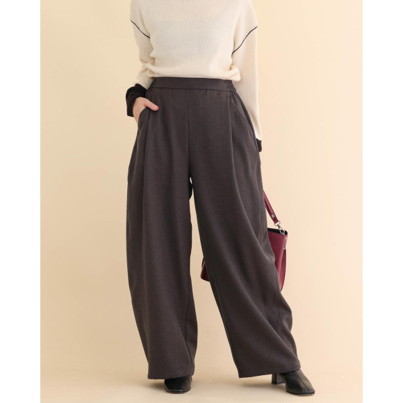 ウール特有のチクチク感を排除しながら、秋冬らしいあたたかみを感じる生地を厳選したパンツ。ポリエステル生地なので、丈夫でしわになりにくく、扱いが楽なのも嬉しいポイント。落ち感のある柔らかな生地で、うっとりするほどなめらかな穿き心地のパンツです。