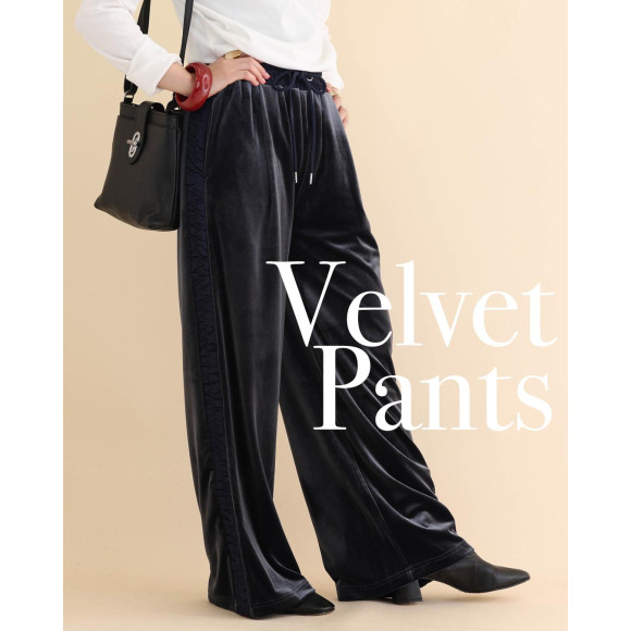 すっかり秋らしい気候になり、コク深いスタイリングが楽しくなってきました。そんな秋のコーディネートのアクセントに☆パリの夜空のように美しい、ベロア生地を使用したパンツが入荷したのでご紹介させてください。