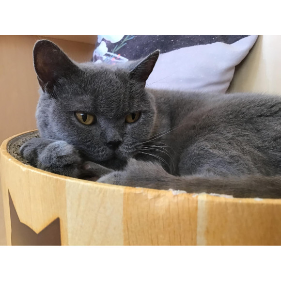 よく丸い爪とぎベッドの上にいることが多いですよ♪