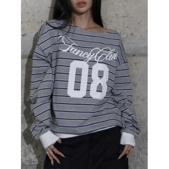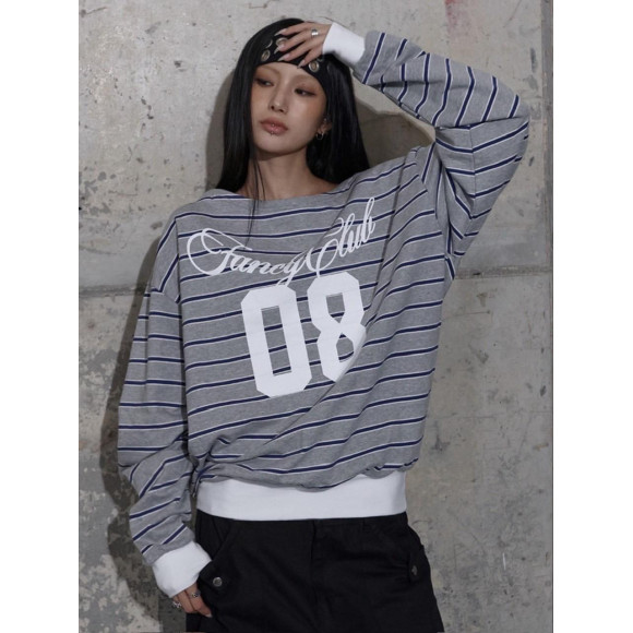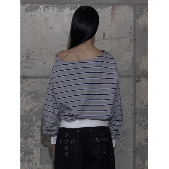 【FANCY CLUB】STRIPE ONE-SHOULDER SWEATSHIRT / 【ファンシークラブ】ストライプワンショルダースウェット長袖Tシャツ
