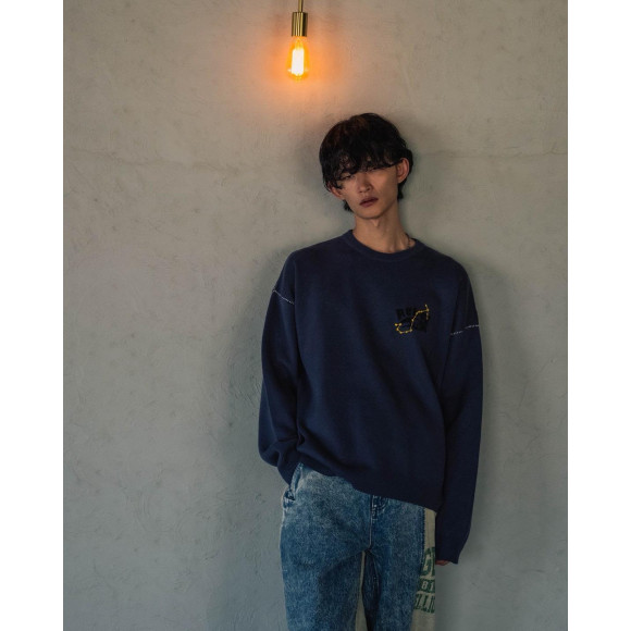 コットン100%の糸を使用し、しっかりと度詰めで編み立てたジャカードクルーニット。