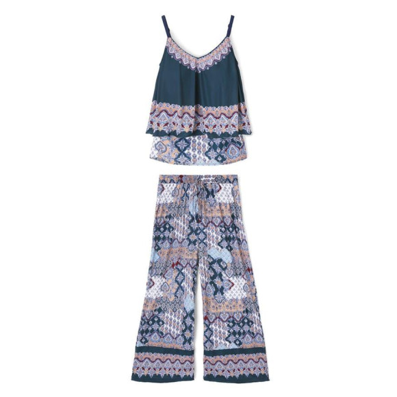 リゾート感出るデザインでゆったりとオシャレに着れる、ロングパンツセットは海やプール旅行先など色んな場面で大活躍!