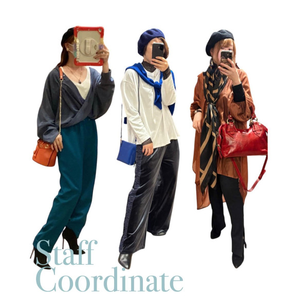 ということで、今日はカラーバッグを使ったスタッフのコーディネートをまとめてみました。