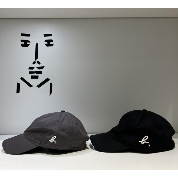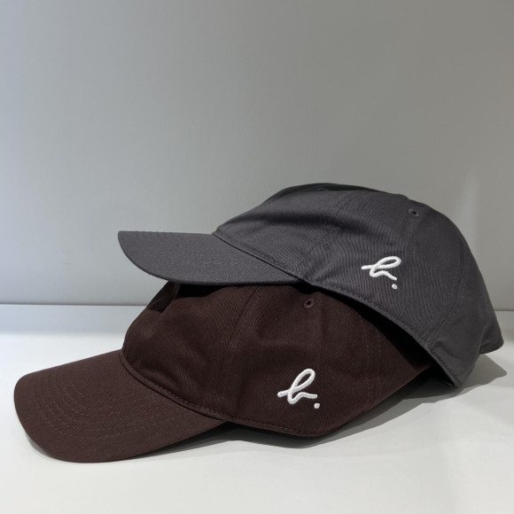 今回入荷した新色ブラウン・グレーは、定番ブラックよりもb.刺繍が少し小ぶりになり、ツバの広さなど形も少しリニューアル。