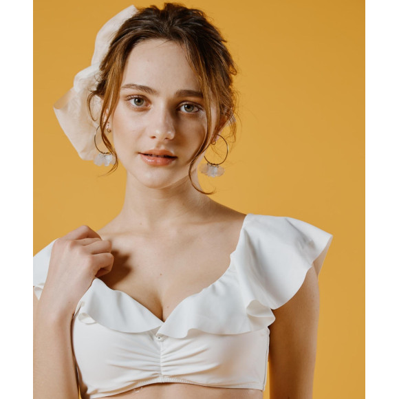 大きめフリルがフェミニンな印象♡