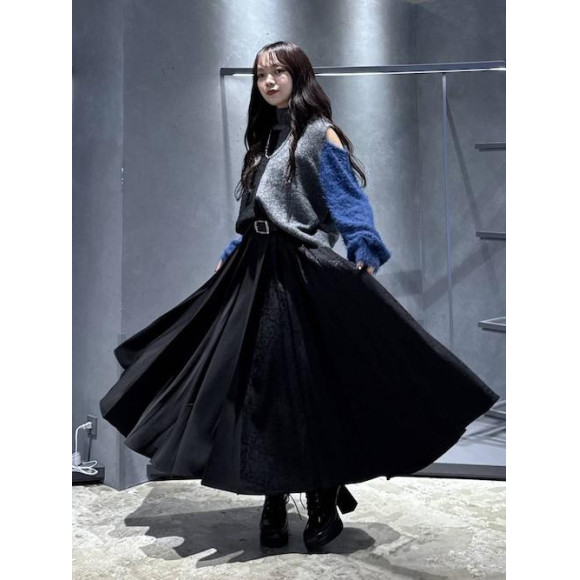 肩開きデザインなさで華奢見えするニット