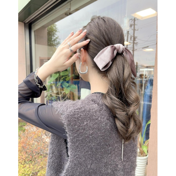 ☑︎片結びリボンベロアフックポニー