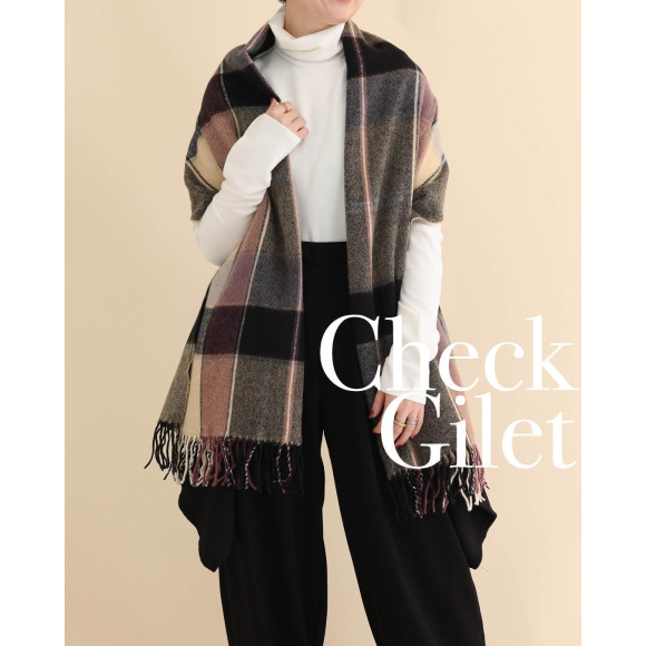 ということで今日は、そんな時にぴったりなアイテムをご紹介♡ 切れ込みに腕を通すと、ベストに大変身するチェックジレストールです。なんと先日、さらにお得な¥5900にプライスダウンしました☺️