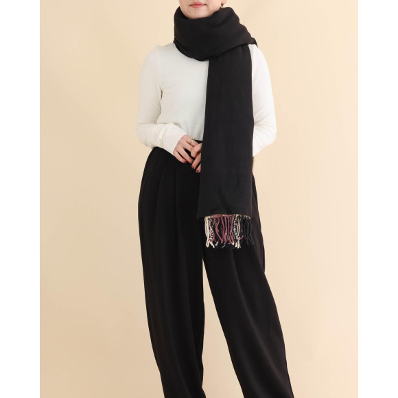 ストールとしてはもちろん、ショールとして肩からかけて、コートの下にライナーとして、コートの上からさっと羽織っても◎その日、その時の気分で自由に着こなせる楽しいストールです。畳むと膝掛けとしてもご活用いただけるので、お出かけにはもちろん、お仕事でも活躍してくれそうなアイテムです。