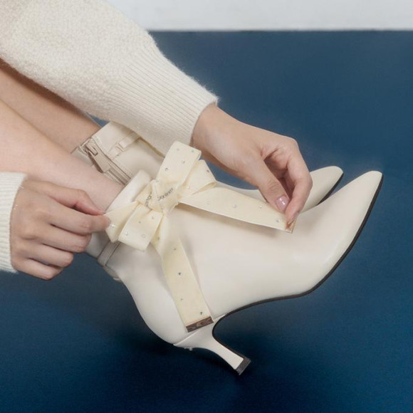 華やかなビジューベロアリボンが印象的な2WAYショートブーツ。