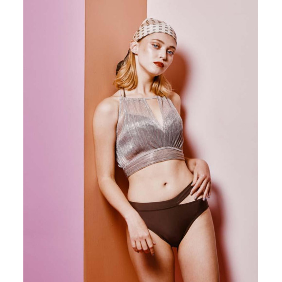 セットのショーツもアシンメトリーデザインでトレンド感たっぷり。
