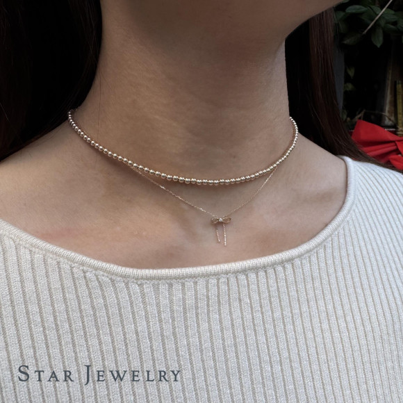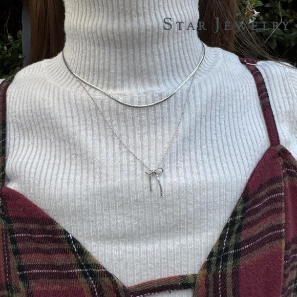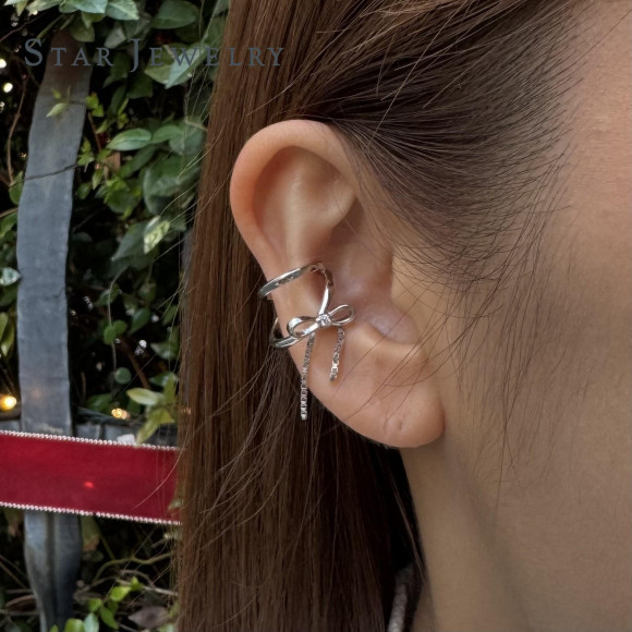 アシンメトリーにデザインされたチェインが揺れ、リボンの結び目のダイヤモンドがキラッと輝く可愛いデザインです♥
