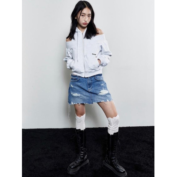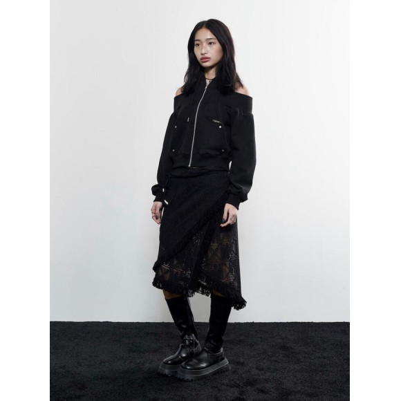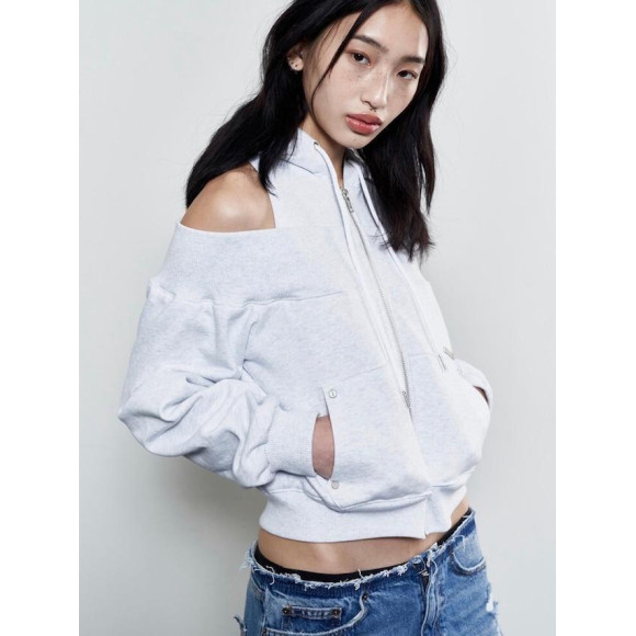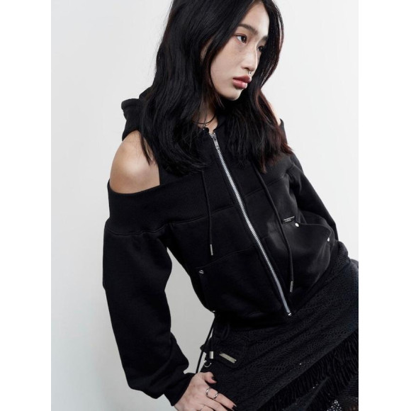【NOT KNOWING】Open Shoulder Zip Up Hoodie / 【ノットノーイング】オープンショルダージップアップパーカー
