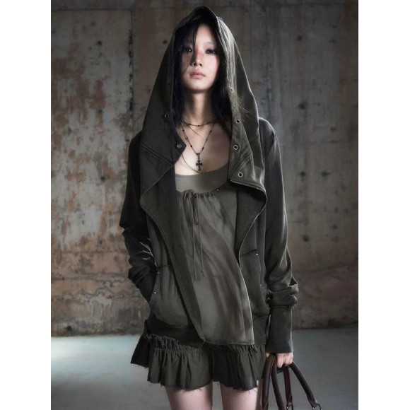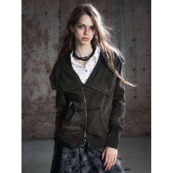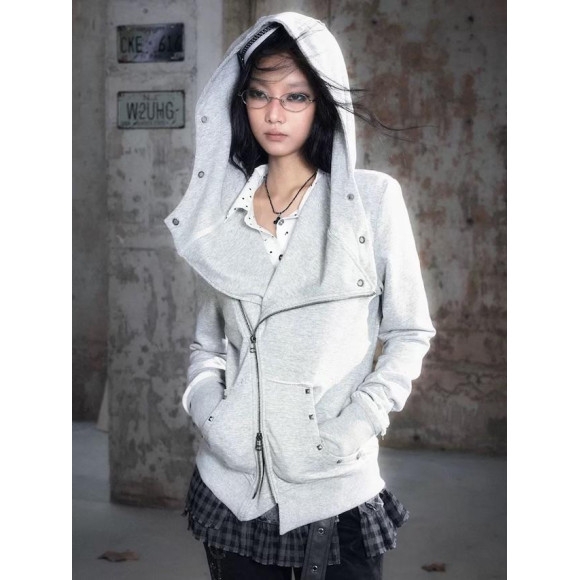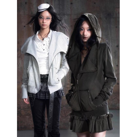 【Cest Nous】Studded Hoodie / 【セヌー】オープンカラースタッズジップパーカー