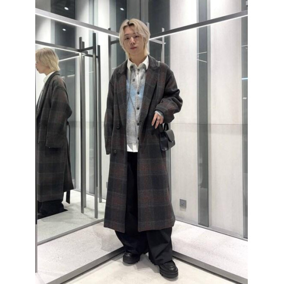 黒のコートは持ってるって方におすすめの色です! チェック柄で落ち着いてる色味なので2、3着目のコートとしておすすめ! インナーはカーディガンとシャツを合わせる事で本来コートが持ってる綺麗めを最大限引き出せたスタイリングが完成します!