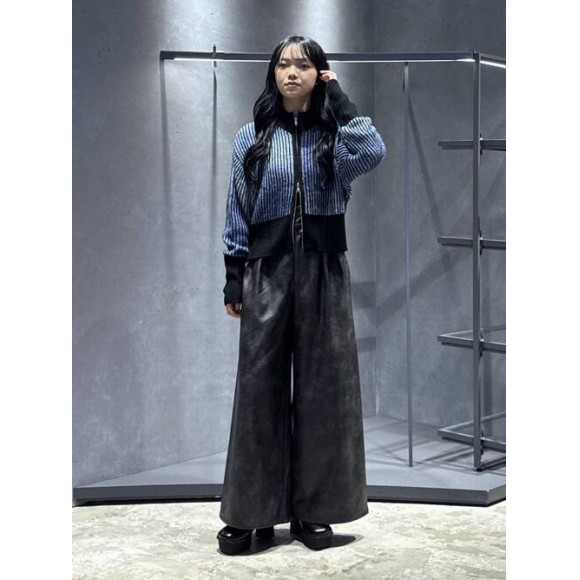 レザーパンツもダブルウエストでちらっと見せても可愛いです!