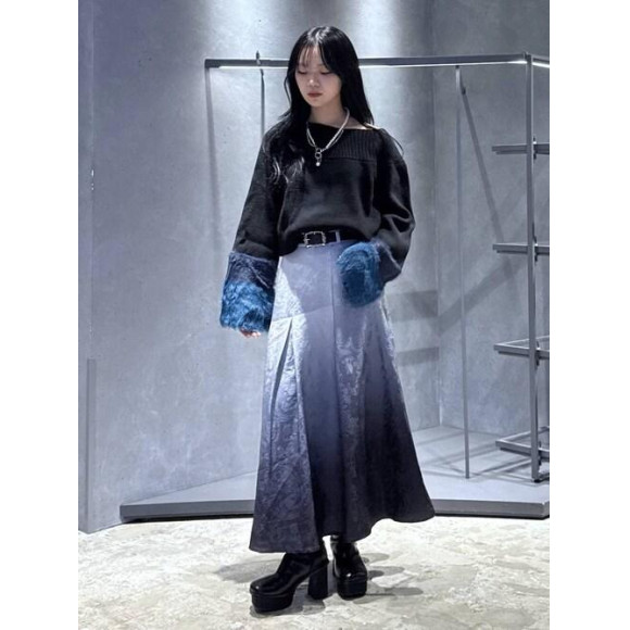 □切り替え部分ごとに柄の入り方を変えることで、立体感と奥行きのある印象