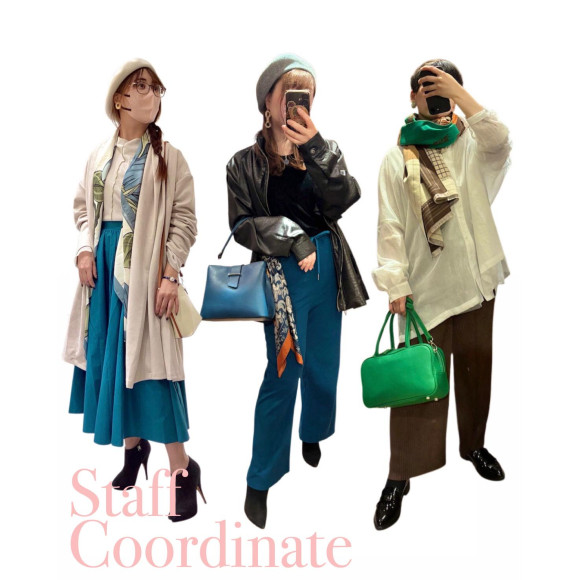 店頭では、スカーフやストールを使ったコーデレクチャーを毎日開催しています☆ぜひお気軽にご相談ください♡