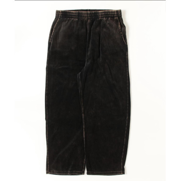 ベロア素材のイージーパンツ。 着古したようなアタリの加工が入っており、ベロア素材と相まって雰囲気のある1着になっています。 同じ素材のジャケットも展開しており、セットアップでの着用もオススメです。