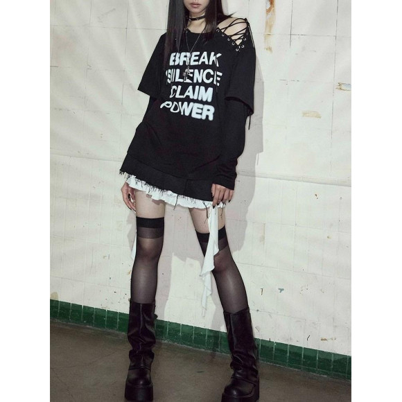 【NOT KNOWING】Lace-Up Layered Top / 【ノットノーイング】レースアップレイヤード長袖Tシャツ