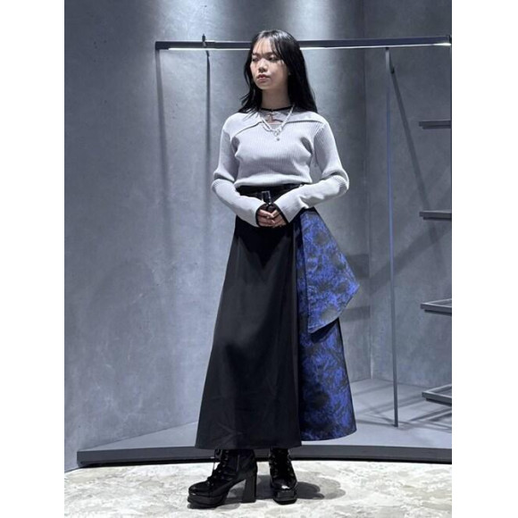 □ジャガードのレイヤード部分はファスナーで取り外し可能になっており、ティアードスカートとしてもシンプルなフレアスカートとしても着用可能