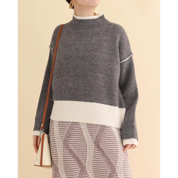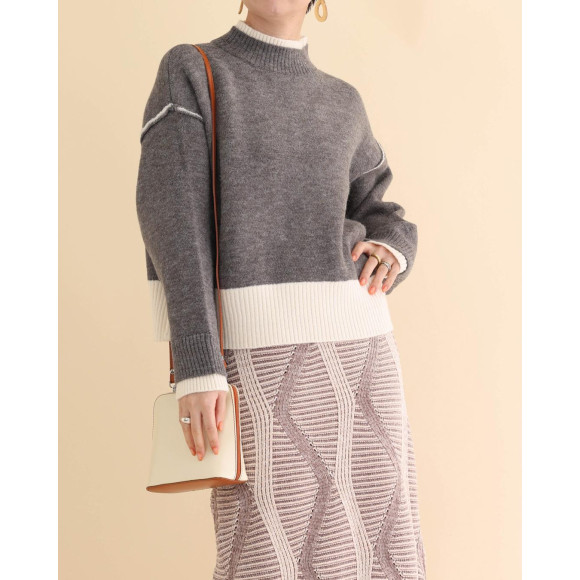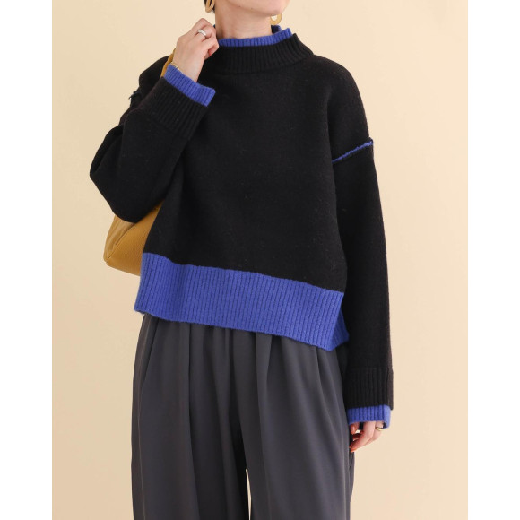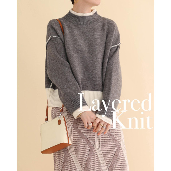 首元と袖元を、重ね着しているようなデザインで作成したニット。アームホールの切替や、裾の色の切替など、随所にポイントを盛り込んで、どんなボトムとも合わせやすいのに、コーデの完成度を上げてくれるアイテムに仕上げています。