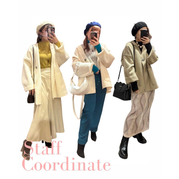 さて、そんな寒い冬に必須なアイテムといえば、アウター。その中でも、ただいま店頭で大人気のボアジャケットを使ったスタイリングをご紹介いたします。