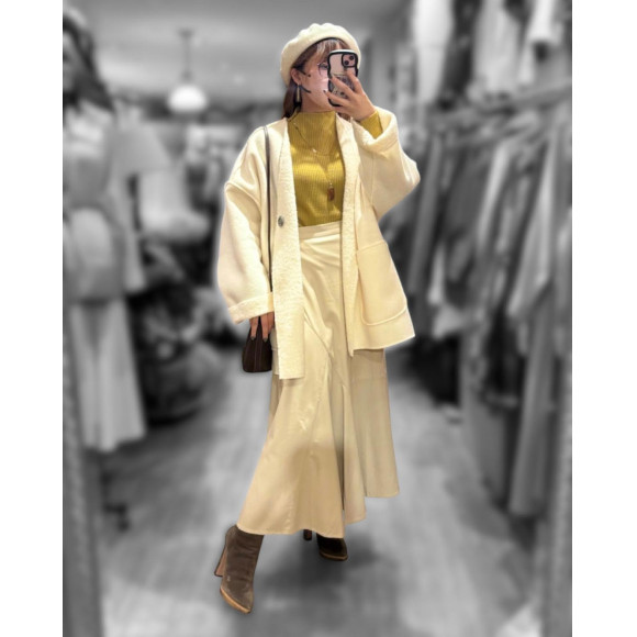 ふんわりシルエットからタイトなものまで、どんなボトムとも合わせやすい長すぎず短すぎない丈。ホワイトとベージュの優しい2色展開なので、左と中のように差し色を引き立てても、右コーデのように黒でピリッとしめても◎どんなテイストのコーデにも使いやすいジャケットです。