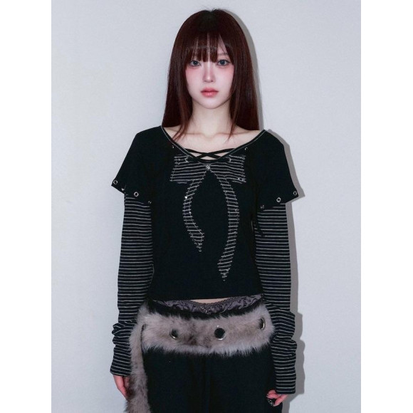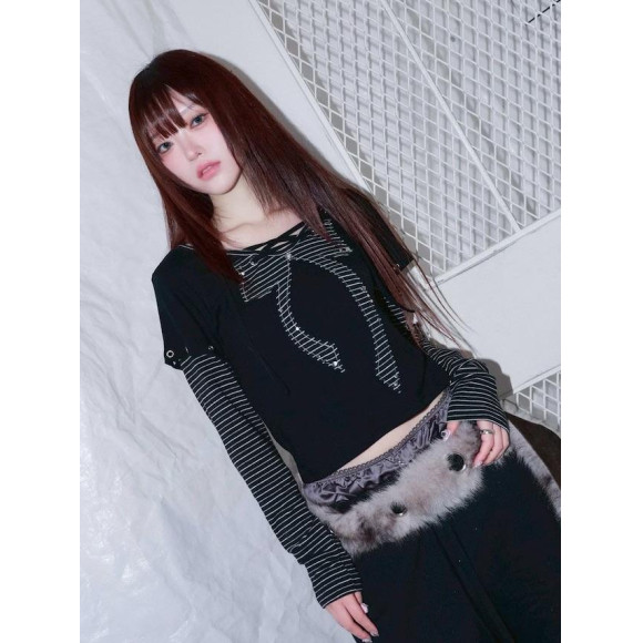 【CHERRYQUIRI】punky bow layered tee